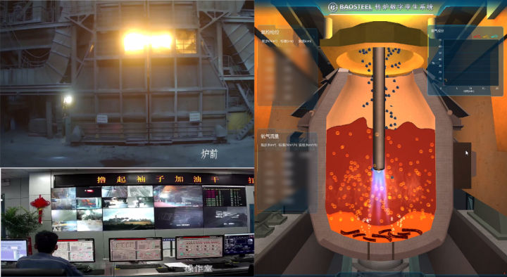传统的炼钢过程,需要吹炼工、合金工、OG工、摇炉工、信号工等多位炼钢工一起完成,工人必须穿戴好劳防用品,在高温、粉尘的恶劣环境中完成,工作节奏快、劳动强度大。2019年7月,在离炼钢现场3000米的一场会议现场,随着中国宝武党委书记、董事长陈德荣按下按键,宝山基地一炼钢3号转炉正式开启“远程一键炼钢”:氧枪缓缓降下,转炉炉内的钢水开始翻滚。这是宝钢股份实现大型转炉“智慧炼钢”关键瓶颈突破后,首次实现真正意义上的“远程一键炼钢”,不仅有效提高了炼钢成功率,缩短了出钢周期,更是大大减轻了工人的劳动强度。