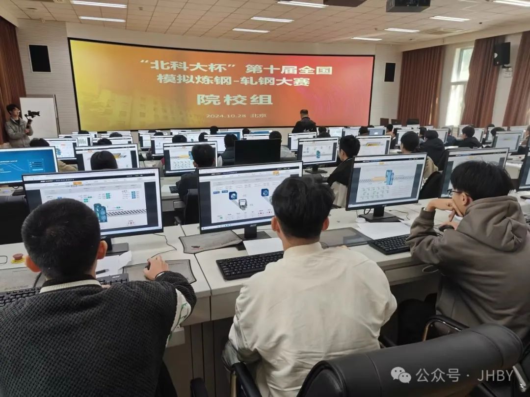 开幕式后,轧钢和炼钢模拟实操比赛在北科大综合楼二层北科大钢铁生产全流程虚拟仿真实践教学平台举行,参赛选手用我公司提供的炼钢轧钢仿真竞赛系统进行了紧张激烈的模拟演练。